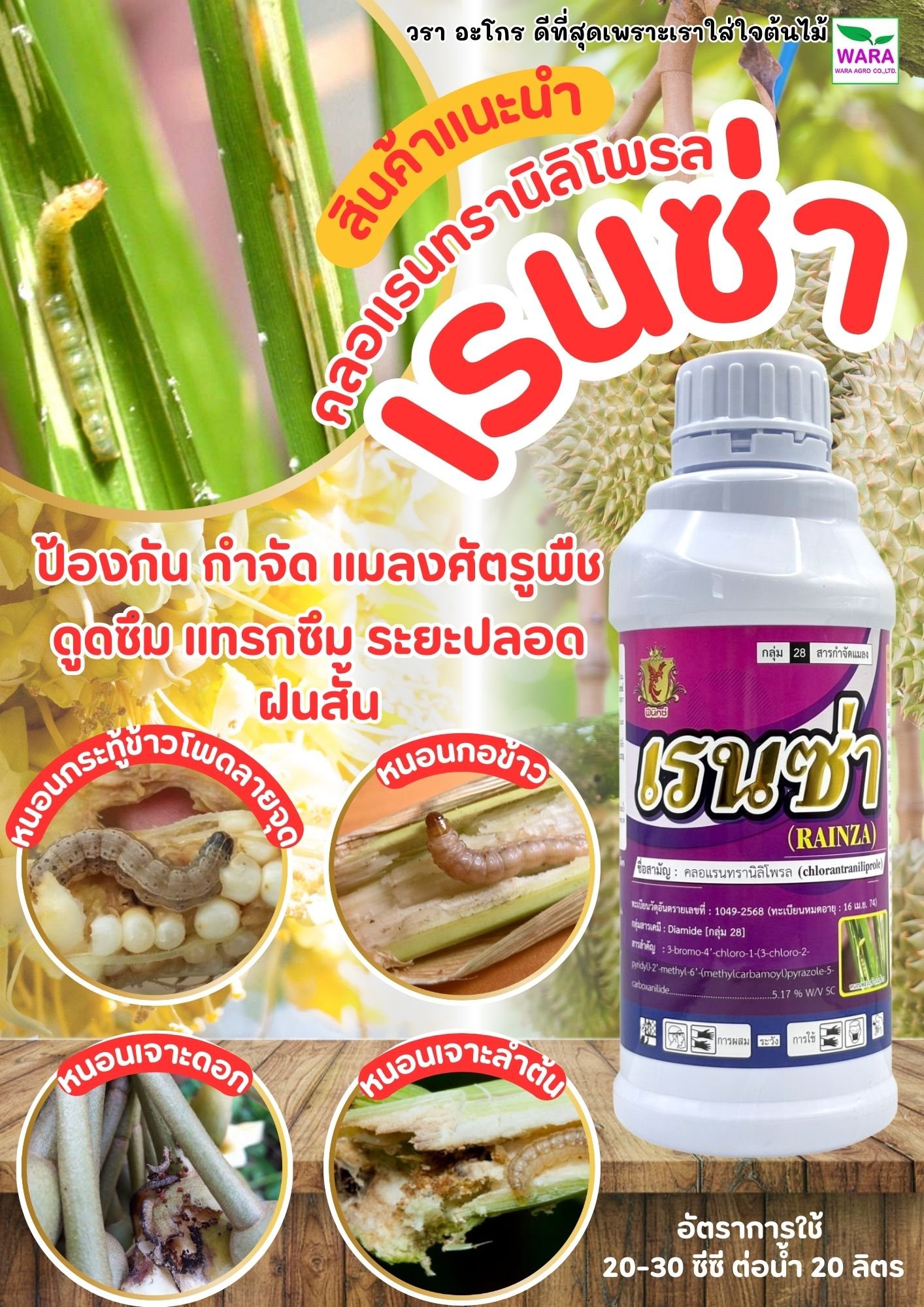 ประโยนช์ : ใช้ป้องกันกำจัดหนอนห่อใบข้าว